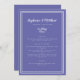 Sencillo, minimalista y elegante Wedding Menu con un diseño contemporáneo con un marco doble y un borde blanco nítido sobre un fondo azulado perwinkle muy moderno. La redacción tradicional proporciona sofisticación atemporal y moderna. Personalice el diseño boda con los detalles del menú en letras blancas y guiones. La parte posterior de la tarjeta coincide con un periwinkle de correspondencia sólida.
