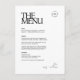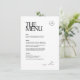 Impresionante, elegante y con un parador minimalista, le dará la vuelta a la cabeza con este elegante menú de Moda sencilla para la cena Minimalista moderna, negra y blanca, que da la bienvenida a los huéspedes a un evento ultra sofisticado con audaces fuentes modernas y líneas clásicas. Totalmente en tendencia pero atemporal de una vez. PERSONALIZAR fácilmente para que se ajuste a sus necesidades.