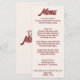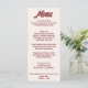 A colorful retro funky modern cream and deep red wedding dinner menu. Which features chic template design of boho vintagecream background and deep red bold typography .Perfect and matching with the whole suite.