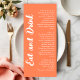 Menú Modern Coral Orange Eat and Drink Wedding