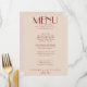A colorful retro funky modern bright wedding dinner menu. Which features chic template design of boho vintage creamy background and deep red typography and hand written menu. Perfect and matching with the whole suite.