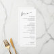 These modern minimalist black and white wedding menus feature elegant handwritten script typography and a clean layout that beautifully showcases each food course. The word “Menu” appears in refined, modern lettering, while simple design details highlight your dinner meal selections. Perfect for couples seeking elegant wedding menus with a timeless, modern minimalist style.