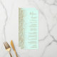 The left-hand edge of this elegant modern wedding menu features a gold faux glitter design. The customizable text combines gold-colored handwriting, copperplate and italic fonts on a mint green background. The reverse side features a matching mint green and gold glitter design.