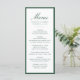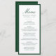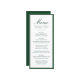 Featuring graceful dark green script at the top, this wedding menu combines traditional calligraphy with crisp serif lettering for the couple’s names and menu details. The deep green frame brings a sense of richness and understated luxury, perfect for estate, garden, and classic weddings. With its balanced composition and strong border, this menu card offers a polished presentation for showcasing your reception courses in a cohesive and elevated way.