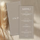 Modern and simple wedding menu in light brown. Clean and easy-to-read design that matches a minimalist modern wedding theme. Includes course description - starter, main course, desert and drinks information which is easy to edit and personalize.