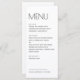 This modern wedding menu card features a clean minimalist layout with elegant typography, perfect for displaying your reception menu in a refined and timeless way. Designed to complement contemporary and classic weddings, it adds a polished finishing touch to your table settings. Customize the menu text with your own courses, dishes, names, and wedding date. Ideal for formal dinners, plated receptions, and modern wedding celebrations. This menu card pairs beautifully with neutral, white, and understated wedding decor.