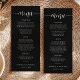 ¡Que tu historia de amor se desarrolle durante la cena! Esta carta de menú boda incluye un caprichoso guión con letras a mano, que refleja la alegría de su celebración. Los menús se presentan en un diseño minimalista en blanco y negro, lo que permite a los clientes navegar fácilmente por los cursos previstos para su noche especial.