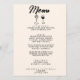 Una vintage carta retro funky y moderna para la cena en negro y crema boda. Que presenta diseño de plantillas de moda de fondo lechoso cremoso y tipografía escrita a mano negra. Con vino tinto Hand y copas de champán en la parte delantera. Y la mano dibujó torta en la parte de atrás dentro de un extraño borde dibujado a mano. Una perfecta y a juego con la suite.