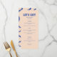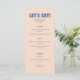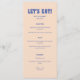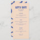 Moderno azul y beige "¡Comamos!" Menú de boda. Personalizar con nombres de novios y fecha de boda, y añada todos sus elementos de menú, incluyendo entrantes, platos principales, postres y bebidas.