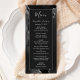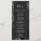 Este elegante y moderno menú boda se caracteriza por una combinación de acuarela negra y purpurina de imitación plateada. El texto aparece en letra elegante de color gris plateado y fuentes de copperplate en un rectángulo de color negro. El diseño de agate se repite al revés.