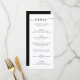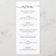 Elegante menú personalizado boda en blanco y negro con un moderno tipo de letra de guión. Personaliza fácilmente en línea. Elementos coincidentes disponibles para complementar este minimalista menú boda en blanco y negro.