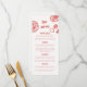 Nuestro menú boda, único en su género, es realmente *beso de los chefs*. Este diseño presenta una tipografía divertida y ecléctica que imita la escritura a mano natural, con ilustraciones hechos a personalizado, perfecto para representar a su fiesta de recepción y cena. Esta versión incluye agudos pops de rojo.