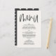 Moderno menú de boda monocromo gráfico mínimo manuscrito. Moderno en diseño de tipografía de tendencia. Como parte de una colección, los colores se pueden cambiar para adaptarlos a su esquema de color.