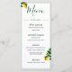 El diseño del menú de bodas elegante y moderno de la vegetación amarilla de los Lemones botánicos. Un diseño personalizado del menú de bodas con su información que se cambia fácilmente para personalizar de la papelería de su boda. Boda personal estacionario de Just Fine Designs.