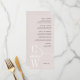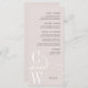 Los elegantes menús monográficos para su boda o cena de ensayo incluyen sus iniciales en la parte inferior izquierda, junto con un adorno "y", en un fondo de color gris pálido.