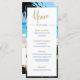 Playa tropical y mar del océano Diseño del menú de bodas moderno y elegante. Un diseño personalizado del menú de bodas con su información que se cambia fácilmente para personalizar de la papelería de su boda. Boda personal estacionario de Just Fine Designs.