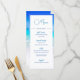 Hermosa playa azul y costa del mar Moderno y elegante diseño de menú de bodas. Un diseño personalizado del menú de bodas con su información que se cambia fácilmente para personalizar de la papelería de su boda. Boda personal estacionario de los diseños finos de Chessie.