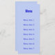 Esta tarjeta de menú azul Monograma moderno se puede personalizar con el menú boda. En la parte trasera, la tarjeta incluye el nombre de la pareja y la fecha del boda. Para el formato de fecha europeo, simplemente cambie el mes y el día cuando rellene los campos de fecha de la plantilla.