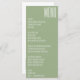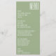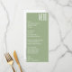 Elegante estilo minimalista verde y blanco, menú boda ultramoderno personalizado con una audaz tipografía monográfica. Este menú es fácilmente modificable. Si necesita ayuda para la personalización de este producto o necesita más productos para esta colección, por favor, envíeme un mensaje a través de Zazzle.