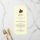 En un fondo de marfil, una hoja de arce sutilmente monogramada acentúa este menú.