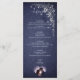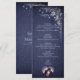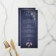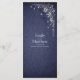 An elegant tall menu card featuring silver botanical engraving accents and subtle star details over a midnight navy background. Designed for clear course listings while maintaining a refined celestial woodland aesthetic, this menu card is perfect for evening receptions, formal dinners, and romantic forest wedding decor.