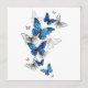 Morfo de las mariposas azules voladoras y mariposas blancas en un fondo abstracto y claro. Morfo. Diseño con morfo de mariposas azules.