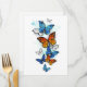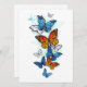 Morfo de mariposa volador, brillante, azul y monarca naranja sobre un fondo blanco. Morfo. Mariposa monarca. Diseño con mariposas.