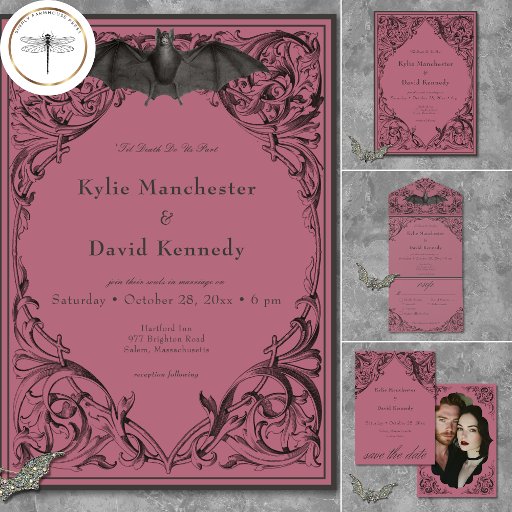 Victorian Bat Until Death Black & Wine WeddingDiseñado por Kathe Santillo