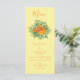 Menú Naranja amarillo Boda Rosas florales