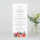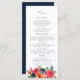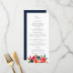 Elementos: flores acuáticas vibrantes y vegetación con nombres en un estilo moderno y divertido escrito a mano. Colores: azul, marina, azul polvoriento, naranja, terracota, siena quemada, rojo, crimson, verde. Temas: botánico, elegante, moda, moderno, romántico, casual, jardín, otoño, primavera, verano, exterior. Colección: Colección de Bodas botánicos rojos Naranja azul vibrante. Tipo de producto: Menú