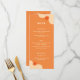 Menú Naranja brillante Retro Boda de verano. Personalizar con una selección de entrantes, entrantes y postres. Por favor, envíe un mensaje al diseñador si necesita ayuda para realizar cambios.