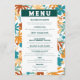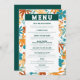 Trae la belleza de la naturaleza a su celebración con esta tarjeta de menú Boho Wildflower Boda, que presenta un diseño floral vibrante y moderno con naranja ranunculus, margaritas amarillas, cosmos verde azulados, amapolas naranjas quemadas y una suave vegetación silvestre. Este menú vertical de 4 x 9,25" es perfecto para bodas bohemias, rústicas, al aire libre, botánicas o de jardín. La disposición se abre con una cálida nota de bienvenida y un cuidado menú gourmet que incluye: mariscos Caprese - Mozzarella fresca, tomates de flores, albahaca y glaze balsámico Crispy Aguacate Bites - Frito de oro con aioli de costillas Opciones de plato - pollo a la parrilla, salmón balsámico con vidrieras y risotto de champiñones silvestres - Truffent patatas fritas de Parmesan y mantequilla de ajo espárragos Postres - Mousse de chocolate decente y tarta de queso de baya Una manera elegante y sentida de guiar a sus huéspedes a través de una inolvidable comida boda. Personalizable completo para coincidir con tu paleta de colores boda y con el tema floral. Perfecto para bodas de primavera, verano o otoño, y trabaja de maravilla para boho del desierto, granero rústico, jardín de bosques, o temas relacionados con los locales de montaña.