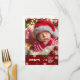 Calendario personalizado de Navidades 2025 con el mensaje "Primera Navidad 2024". La tarjeta tiene un fondo rojo profundo, adornada con copos de nieve blancos y hojas verdes y huecas con bayas rojas. El texto está estilizado en un elegante guión blanco, lo que lo convierte en un reconfortante recuerdo de la primera Navidad de un bebé. El adorno está colgado de una cuerda dorada, ideal para añadir un toque especial a la sensación de vacaciones. ¡Cambie la foto y el nombre de su querido bebé y tenga un regalo festivo de adorno de árbol familiar!