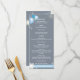 Elegantes y encantadores adornos vacacionales en tonos plateados + azules y bonitos copos de nieve con fondo gris ilustrado en los menús personalizados de Baby Shower. Menús sencillos y encantadores con fiesta para la ducha de bebé en invierno. Todo el texto de ejemplo puede personalizarse completamente con su propia redacción. También puede cambiar los tamaños, fuentes y colores del texto.