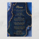 Menú Navy Blue and Gold Agate Marble Wedding