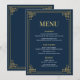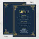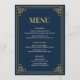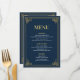 🥂Eleva tu decoración de mesa con este sofisticado menú de cena. Parte de nuestro exclusivo Navy & Gold Art Deco Suite, esta tarjeta de menú presenta un fondo azul marino profundo atemporal y un marco geométrico dorado lujoso. Su diseño limpio y tipografía elegante están diseñados para proporcionar una experiencia gastronómica de alta gama para tus invitados.✨