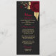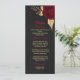 bellas flores borgoñas y hojas de oro elegantes menú boda negro. Los detalles del purpurina se simulan