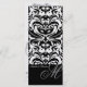 La invitación real del menú de la boda del damasco del monograma de B&W es completamente adaptable. Impreso en el papel metálico o golpeado el botón del personalizar y escoja a su favorito.