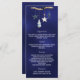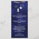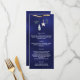Fondo azul marino, madera marrón y decoración navideña azul y blanca. El color de fondo azul es desigual. Estrellas azules y blancas, y una mujer gnomo azul. Personaliza y añade tu menú.