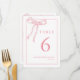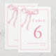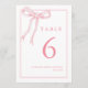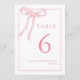 Tarjetas de número de mesa coqueta femenina con lazo rosa