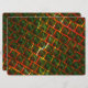 Estampado con imágenes cuadradas y arañazos con manchas rojas y amarillentas. Con trazos oscuros y verdosos a veces 'destruidos' por efectos, y lo que parece ser ojos en cuadrados.