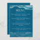 Traiga un toque de elegancia costera a su celebración con este artístico diseño de menú. Con olas de agua azul océano pintadas a mano, este modelo es perfecto para bodas en la playa, recepciones junto al mar, fiestas de verano o eventos de temática náutica. Las serenas obras de arte ondulado añaden una estética fresca y moderna, por lo que el menú no sólo es práctico sino también una bonita parte de la decoración de la mesa.