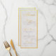 Un menú simple pero elegante con un marco de oro falso y fondo de mármol y escritura caligráfica elegante para título y subtítulos. El título "Menú" es de oro falso, los subtítulos (que se pueden cambiar) son simplemente de un color dorado similar.
