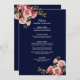 Menú Oscuro moody rosa y rosas rojas azul marino boda