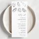 Añada detalles de moda a su recepción con este menú Boda de Cava y Ostra. Ilustraciones de ostras dibujadas a mano y champán, acompañados de un guión elegante sobre un fondo blanco nítido, la carta ofrece un tono moderno y lúdico para la celebración de la cena. Personalice sus entrantes, platos principales y postres para que coincidan con su evento. Perfecto para bodas costeros, celebraciones de inspiración marinera o recepciones de moda con un toque gastronómico elegante.