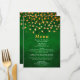En la carta, rústica y granulada, las hojas de oro se colocan en un fondo verde angustiado. El texto combina tipografías cursivas y serif para un estilo moderno y elegante. Esto será perfecto para bodas otoño.