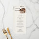 Eleva la recepción de tu boda con estas elegantes tarjetas de menú de dos caras, diseñadas para complementar tu temática occidental moderna. Con flores neutras y un encantador motivo gorra de vaquera, combinan el encanto rústico con la elegancia atemporal. Por un lado se sirve un menú de cena cuidadosamente seleccionado, y por el otro se resalta la selección del bar, para que los huéspedes disfruten de todas las celebraciones. Imprimidos en cartón de textura premium, estos menús le dan un toque elegante y pulido a su día especial.