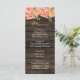 Barnwood Woodsy Peonies Rústico boda, menú de largo de té