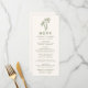Eleva la recepción de tu boda con esta elegante carta de menú, que muestra palmeras verdes dibujadas a mano en la parte superior con un suave fondo crema. Ideal para bodas en la playa, tropicales o de destino, este encantador diseño permite a las parejas personalizar sus nombres, fecha boda y un menú muy bien presentado. Una manera muy cuidada de mejorar su escapada e impresionar a sus huéspedes.