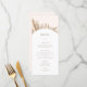Esta impresionante carta es perfecta para un boda bohemio o un evento especial. Cuenta con un bonito matiz beige con un intrincado diseño de pampas en forma de arco de césped para ofrecer un aspecto único y atractivo. La carta del menú es perfecta para añadir un toque de moda boho a tu evento y seguro que impresionará a tus invitados.
